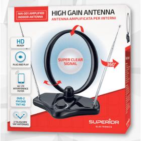 ANTENNA SUPERIOR SUPNAI001 - ANTENNA TV VHF E UHF, RADIO FM AMPLIFICATA PER INTERNI