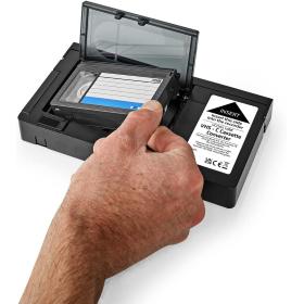 nserire un nastro VHS-C nel convertitore di cassetta Nedis VCON110BK VHS-C per registrarlo o guardarlo con un videoregistratore VHS standard. Inserire una batteria AA (non inclusa) per aprire automaticamente la parte anteriore e caricare o scaricare il nastro. Si prega di essere consapevoli del fatto che i nastri da 8 mm non sono compatibili con VCON110BK. Č possibile utilizzare solo coloro che portano il logo VHS-C.