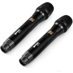 Doppio radiomicrofono UHF a mano con ricevitore a jack – portata 50 metri – 863-865 MHz – alimentato con batterie ricaricabili via USB