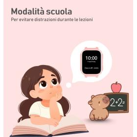 La Modalitŕ Scuola (attivabile tramite l'app Lagenio di controllo parentale), disabilita automaticamente giochi, chiamate e notifiche in orari prestabiliti, rendendo lo smartwatch per bambini un semplice orologio.